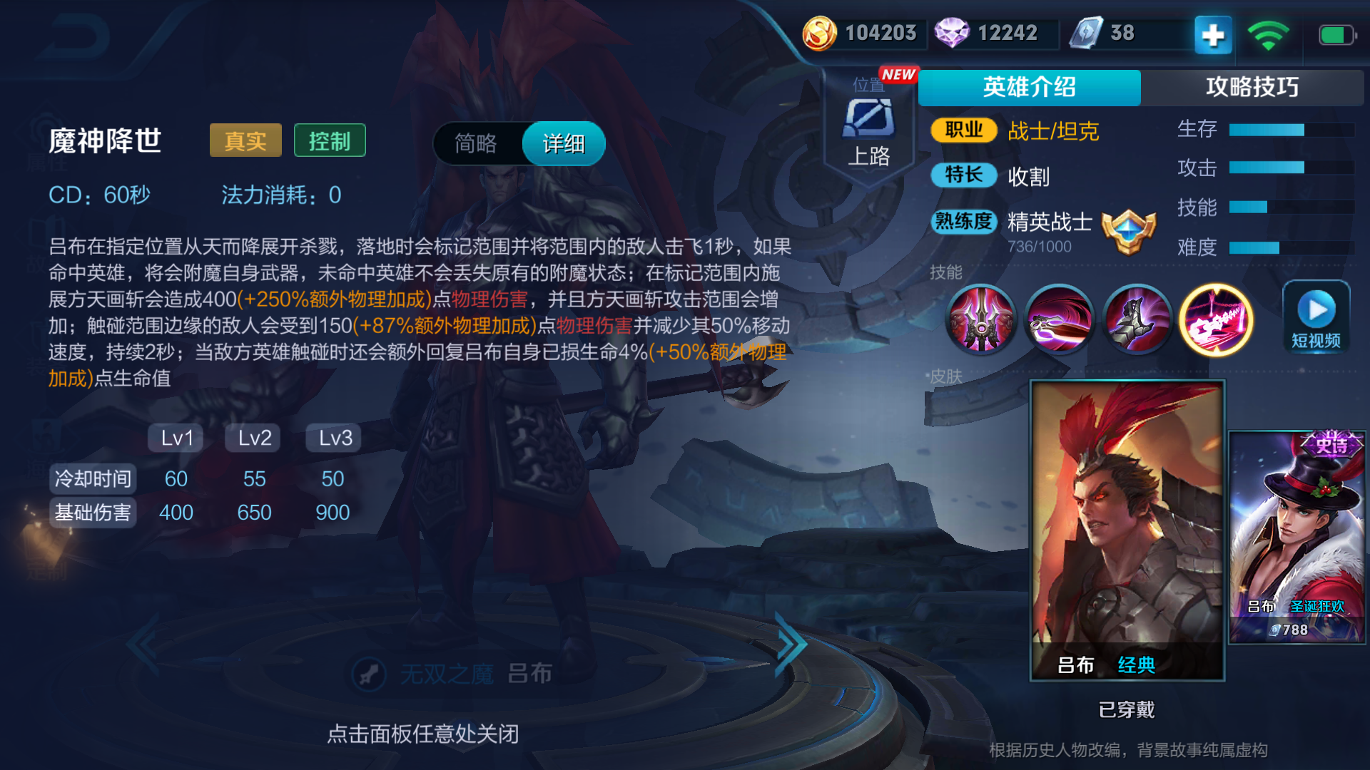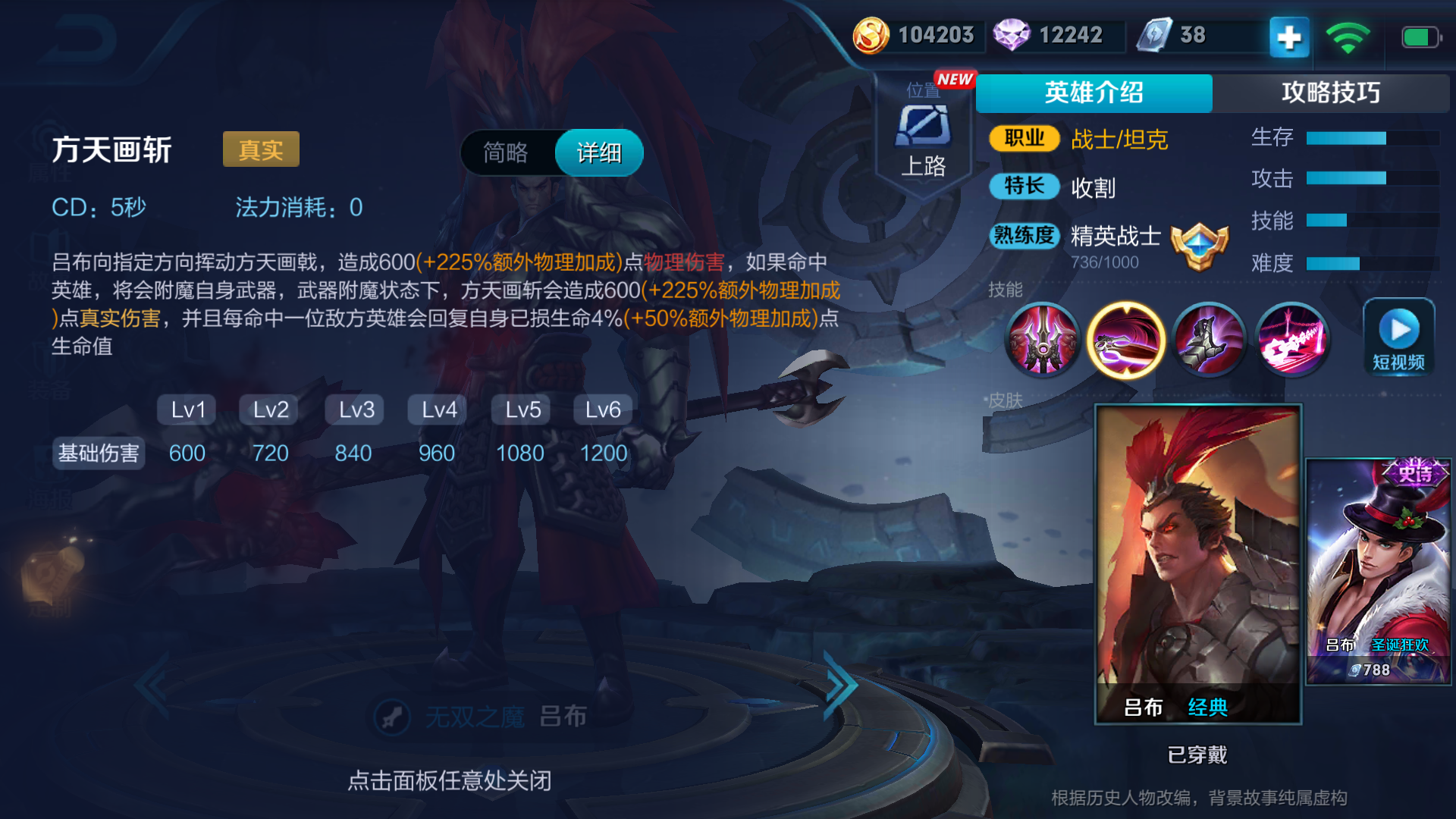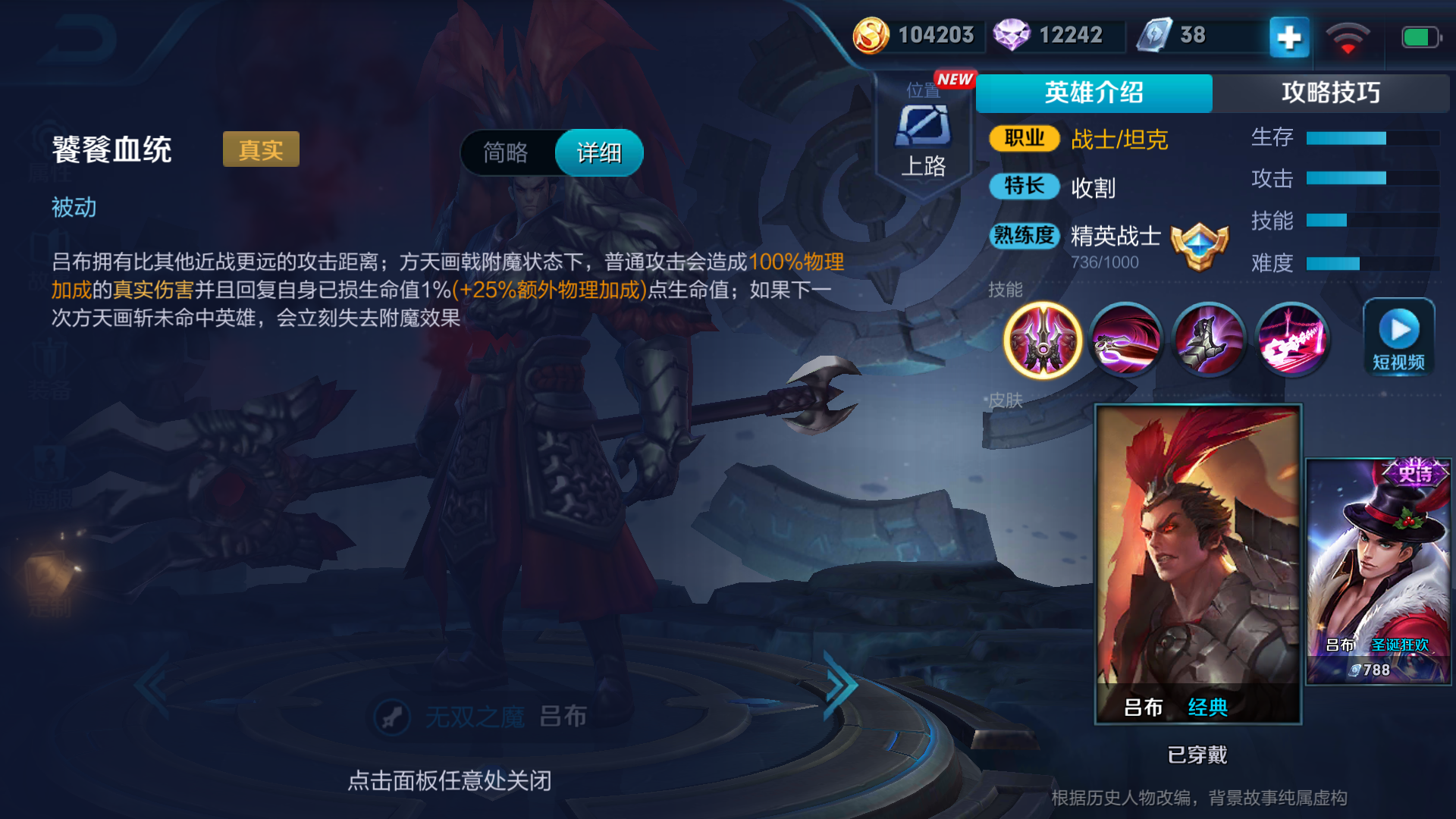 以上就是吕布的进阶攻略,总的来说吕布还是个比较简单易上手的英雄,装备成型后会有种打坦克如打脆皮的快感。甚至在装备碾压的时候一个人就可以完成一波史诗级收割,非常有快感,推荐各位召唤师用来日常排位上分。