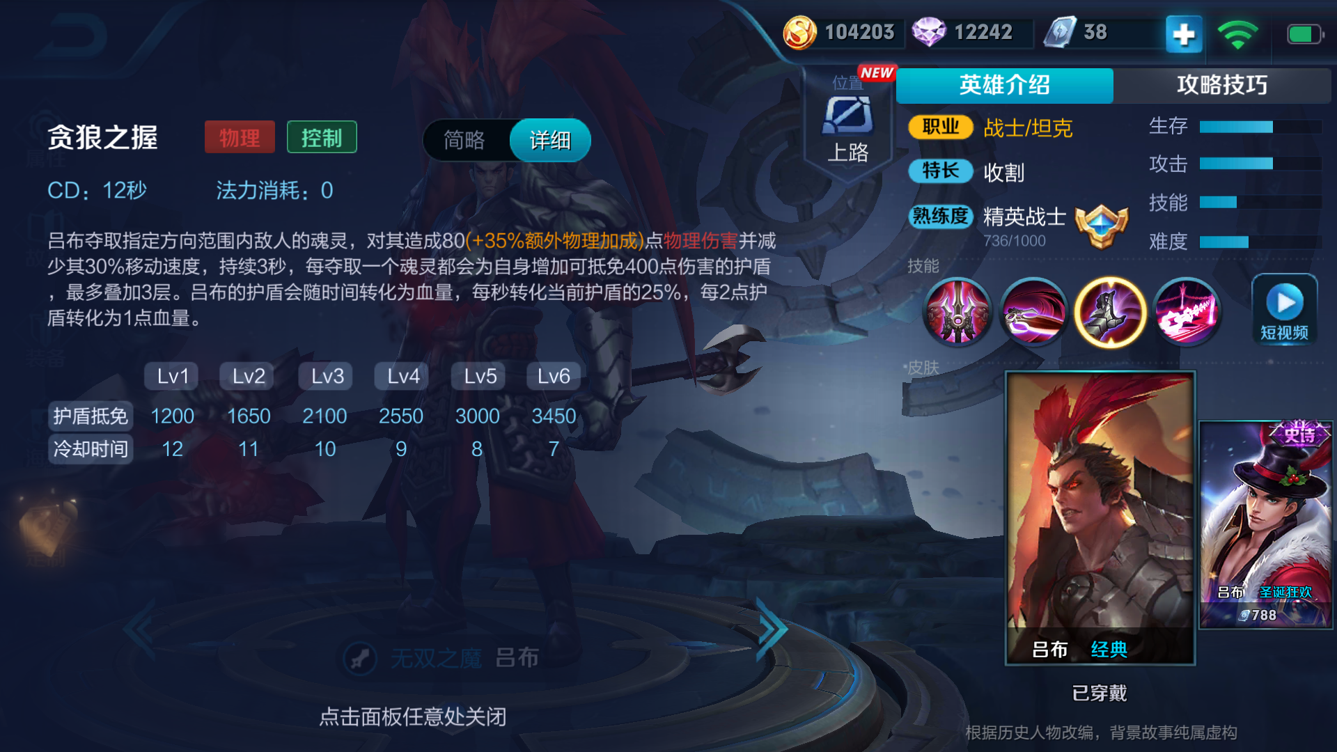 技能解析:二技能是吕布的保命技能之一,伤害并不高。抽取的目标越多盾越厚,包括小兵,所以在使用这个技能的时候重要的在于制造多少伤害,而是在于可以抽取到多少个敌对单位。
