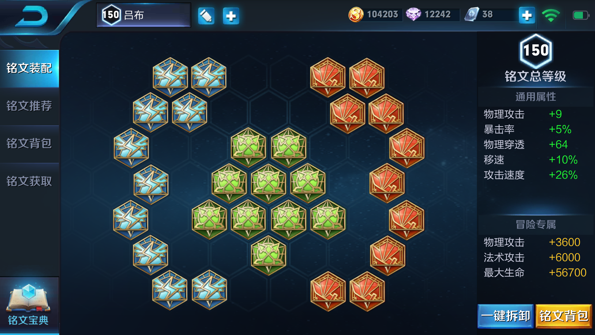 五级铭文推荐:红色红月*10 绿色鹰眼*10 蓝色狩猎*10