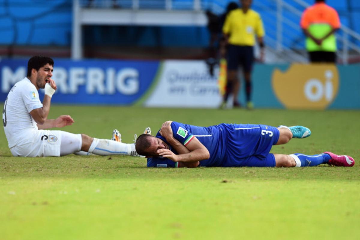 2016 年巴西世界杯小组赛中,乌拉圭球星 Luis Suárez 在比赛进行时与对手,意大利球员 Giorgio Chiellini 的对抗中咬向了对方的肩膀。虽然 Giorgio Chiellini 掀开球衣向裁判示意,但因事发突然裁判未能在当场给出合理的判罚。这是 Luis Suárez 第三次在球场上咬人,而事后国际足联决定对其禁赛且 4 个月严禁参加足球活动,并处以罚款。也是因为这一次「出人意表」的犯规,今年国际足联将「禁止咬人」列入了世界杯规则之中,并明文相关的处罚规则。