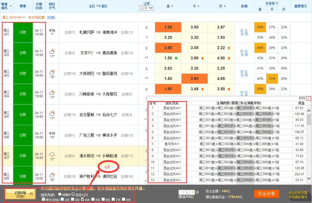 自由过关可与复式投注、多倍投注、混合过关等结合使用 并受相应规则限制。