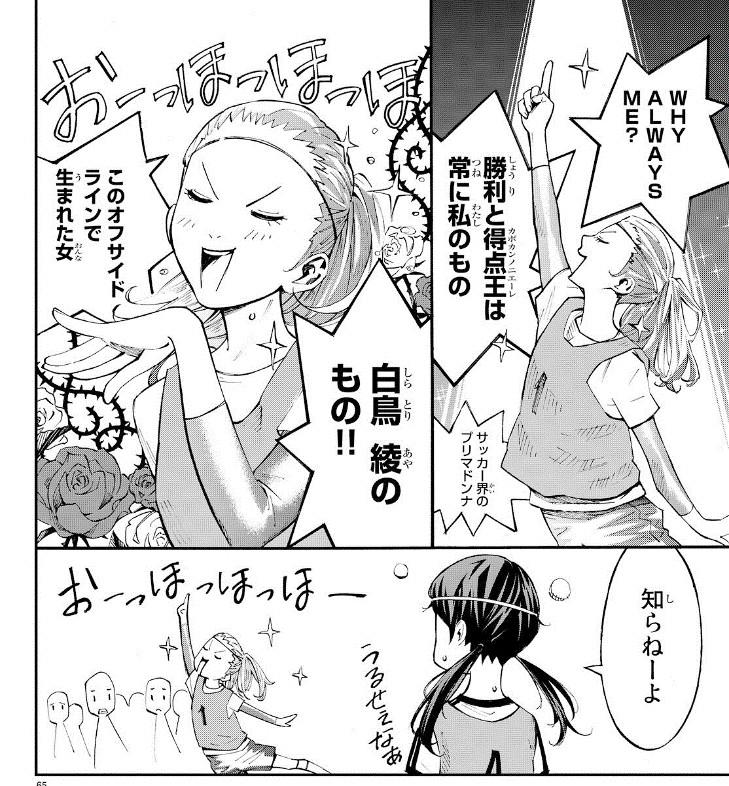 摘自漫画第1话,白鸟绫进球后的场景,此处还藏有2个梗。
