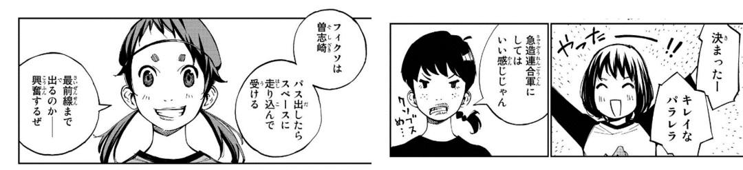 大量使用足球梗与足球战术,表现了新川老师对足球的了解程度之深。对于他来说,在喜欢的工作之中描绘自己喜欢的事物,可以说是再幸福不过的事情了。各位漫画读者如果原本就是足球迷,那么也将会是十分享受这个故事,而之前不是足球迷的朋友,也很容易被新川老师笔下描绘的足球世界所吸引。