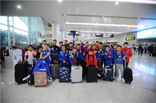 未来之星在机场合影,即将奔赴俄罗斯。