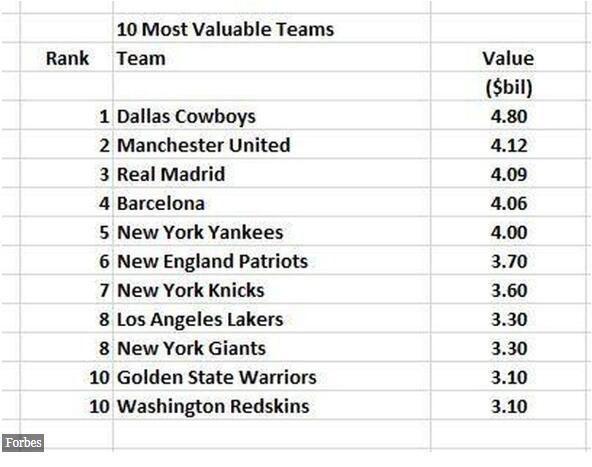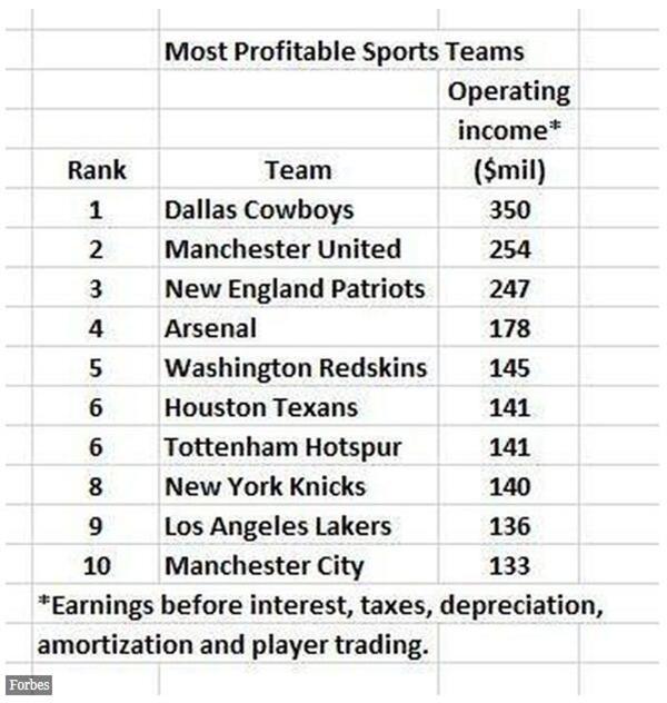 值得一提的是,世界上最赚钱的10支球队中,有4支是足球球队。