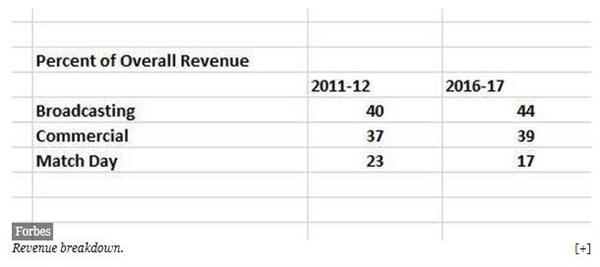这些球星带动了电视直播和转播,从观众那里收获丰厚的直播收入,并且从服装代言等方面赚得盆满钵满。随着时间的推移,广播和商业收入已成为足球收入分成的一部分。