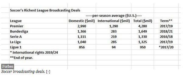 五大联赛电视转播费用