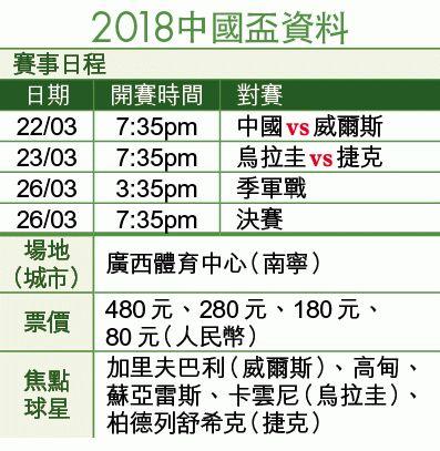 中国今次点兵亦选入不少新人,为19年亚洲杯作准备。早前在U23亚洲杯表现抢镜的韦世豪获纳比信赖,连同邓涵文、刘奕鸣,何超等小将齐入选。23人大军中,大户广州恒大包办七席,惟37岁老大哥郑智落选,国家队生涯或到尽头。今届中国杯续落户南宁,周四上演的中国对威尔斯,最贵480元门票已售罄,而180元与280元的只余少量。
