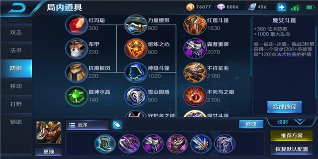 魔女斗篷提供的生命值和法术防御加成大大提高了关羽对敌方法师的抗性,防止关羽被对方法师一套技能带走。