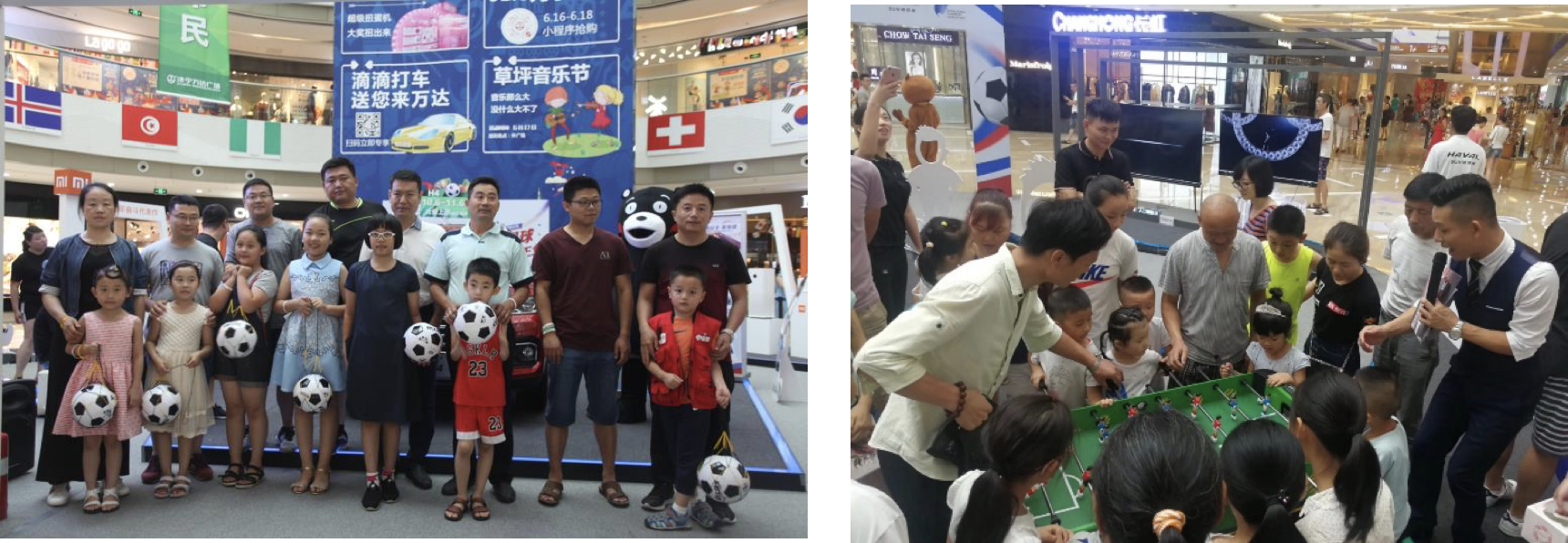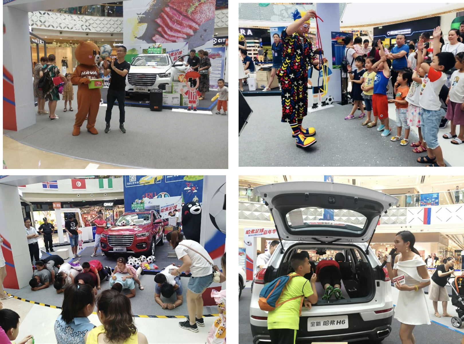 本次哈弗足球嘉年华活动可谓盛况空前,各类游戏互动、高科技体验活动应有尽有。其中,在客流量较大的周末,哈弗策划了一系列贴合世界杯主题的互动活动,包括足球宝贝秀场、世界杯赛事竞猜、足球竞技游戏等,还根据时下节假日举办父亲节主题、端午节主题、亲子涂鸦等亲子活动,成功激发了消费者参与热情。除此之外,在工作日期间,哈弗也准备了多项常规互动活动供大家体验,如与网红熊的互动、桌上足球挑战赛等,让消费者尽享世界杯狂欢。
