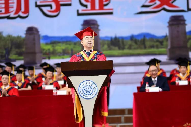 同时,向各位学生家长、家属道一声辛苦!你们望子成龙、望女成凤,为国家、为民族培育英才,含辛茹苦,今日初尝回报!还要特别向各位老师,尤其是辅导员老师、研究生导师,真诚地道一声感谢!你们一片丹心,耕耘四季,今天收成美好,桃李芬芳!