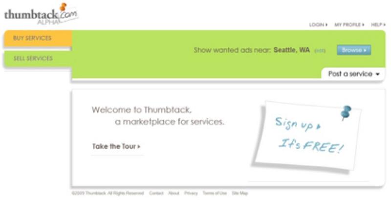 Thumbtack帮助消费者搜索和比较本地服务的价格。 不过2009年该公司网站仅提供了一个非常简单的介绍。