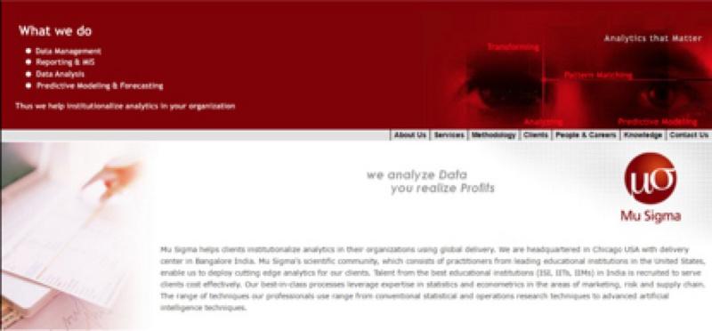 2006年Mu Sigma主页包含了一些有趣的设计,标点符号和资本化选择,成功估值10亿美元。