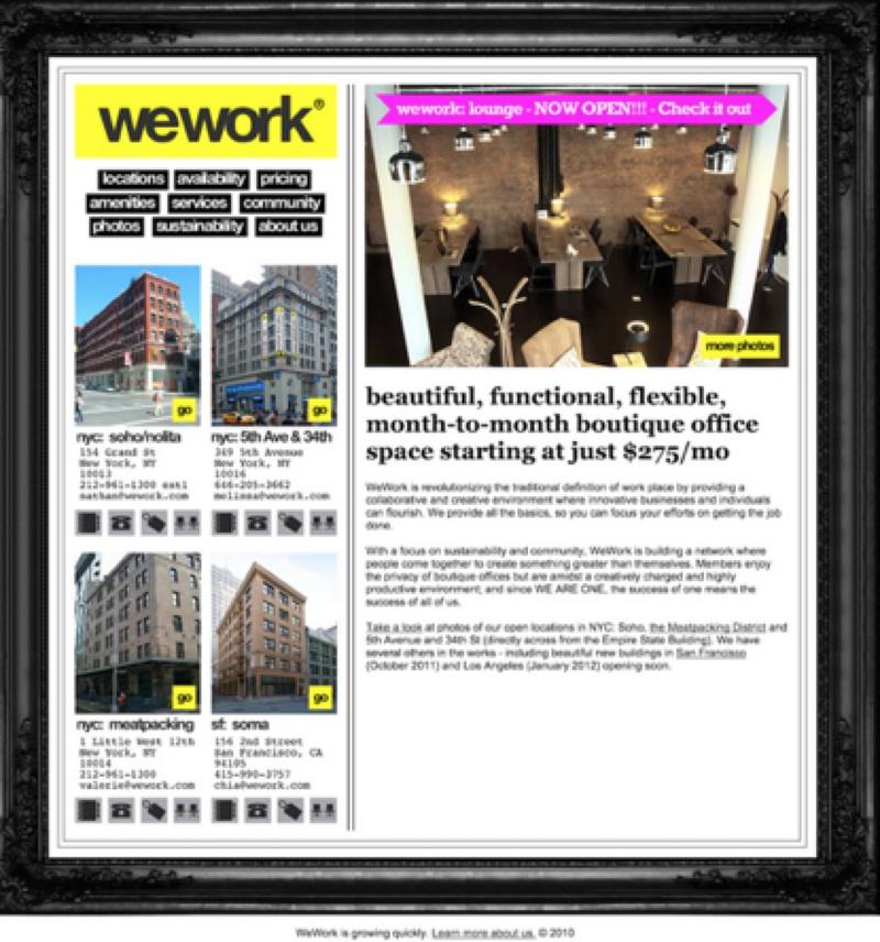 该联合办公领域的巨头公司目前仍在增创业务,提供私人办公室、专用办公桌,甚至支持自定义空间的建立。