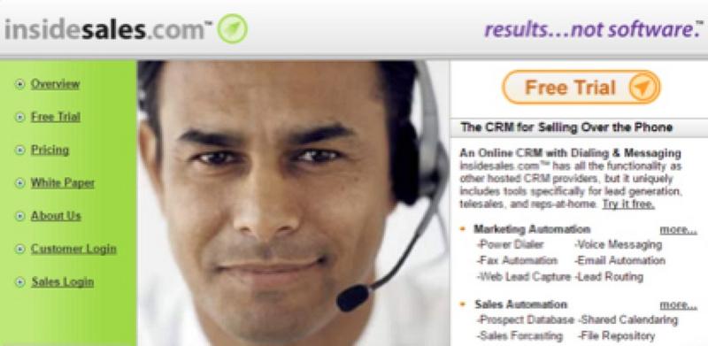 这是InsideSales.com2006年(A轮融资前)的网站主页,也标明了他们的业务范围。