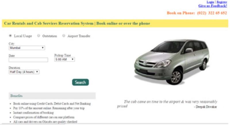 印度系的Olacabs已经算老牌了,不过早在2011年,它的主页看起来更像是一个普通的汽车租赁网站。