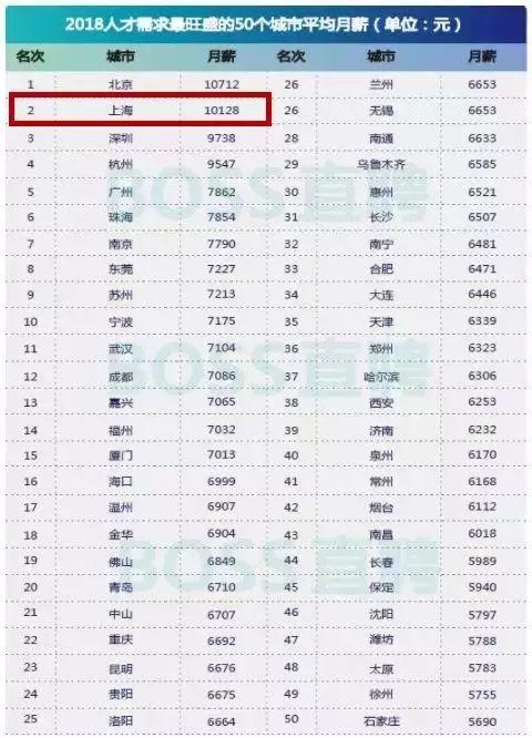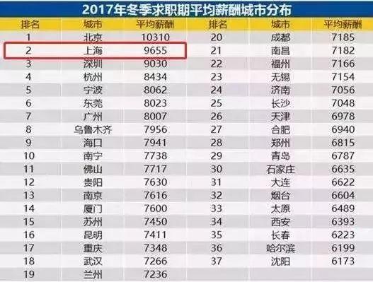 上海排名第二:平均工资9655元