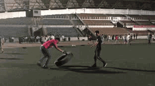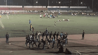他们在运动场的各个地方值勤