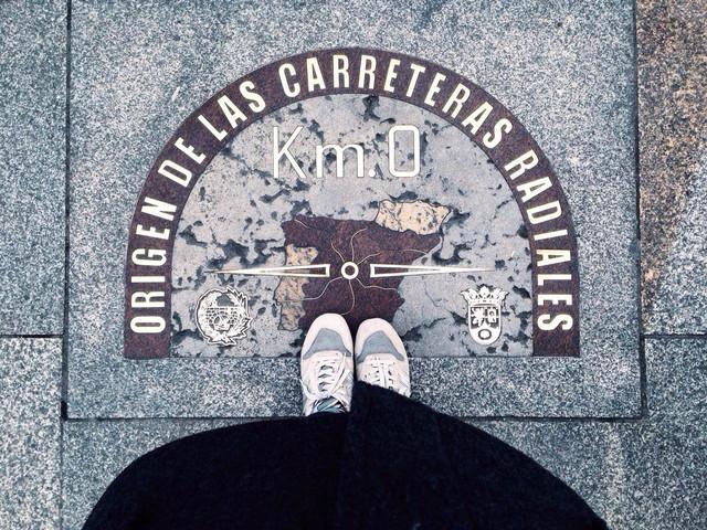 在马德里太阳门广场除了城徽抱树小熊外,“零起点”(Kilómetro Cero)标志也同样是游客纷纷要与之合影留念的点,脚踩西班牙的“肚脐眼”,感受下全西班牙以你为中心的感觉吧!