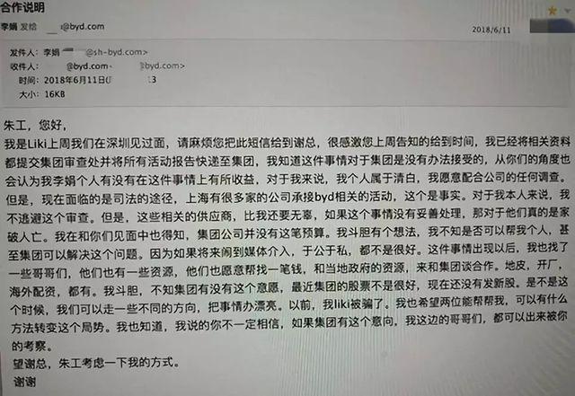 李娟写给深圳比亚迪高管的邮件。