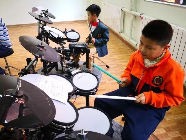 每周两节音乐课,一节课上教材中的声乐、识谱内容,一节课用来学习乐器,小学一到三年级学习口风琴,四到六年级学习手鼓。学习的内容并不仅限于教材本身的内容,在开发授课内容上以文化为依托,以学生为本,真正做到理论与实践相结合。