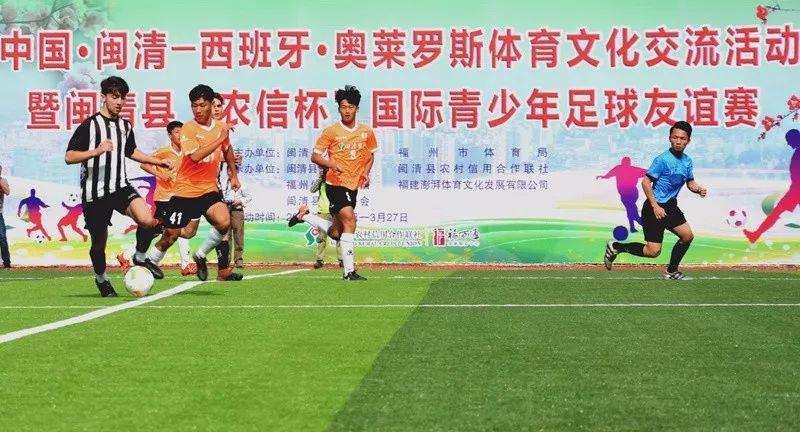 3月26日下午,闽清县“农信杯”国际青少年足球友谊赛在闽清县梅溪新城体育场举行,拉开了中国·闽清——西班牙·奥莱罗斯体育文化沟通活动帷幕。