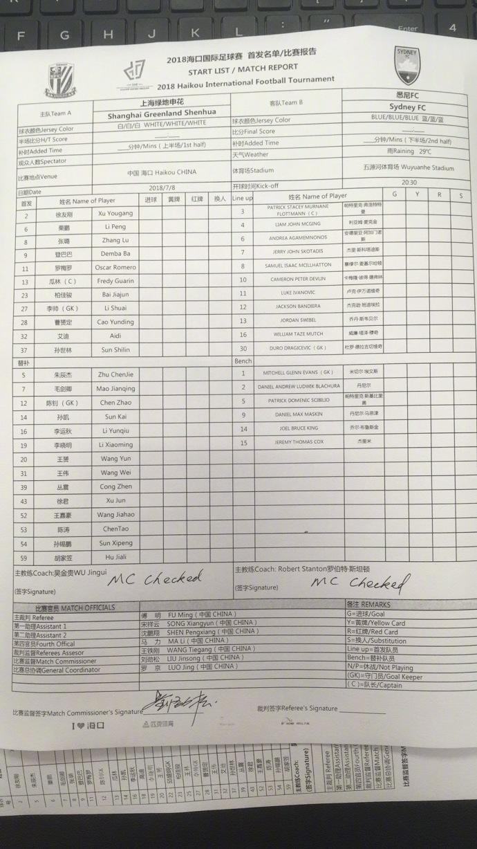 北京时间7月8日20:30,2018海口国际足球赛上海绿地申花对阵悉尼FC的比赛在海口五源河体育场打响。