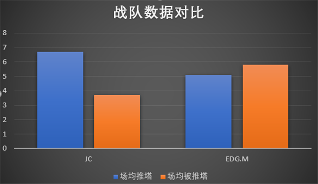 EDG.M场均推塔5.1,位于联赛第七。场均被推塔5.8,位于联赛第九。