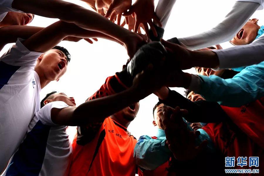 参赛球员一起为自己加油助威。(新华网发 张玉杰摄)↑