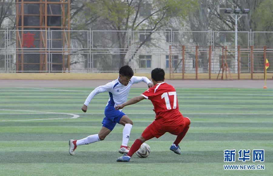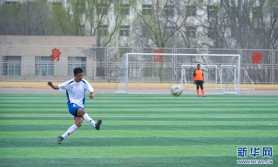 比赛中一名球员奋力将球踢出。新华网 王小龙摄↑