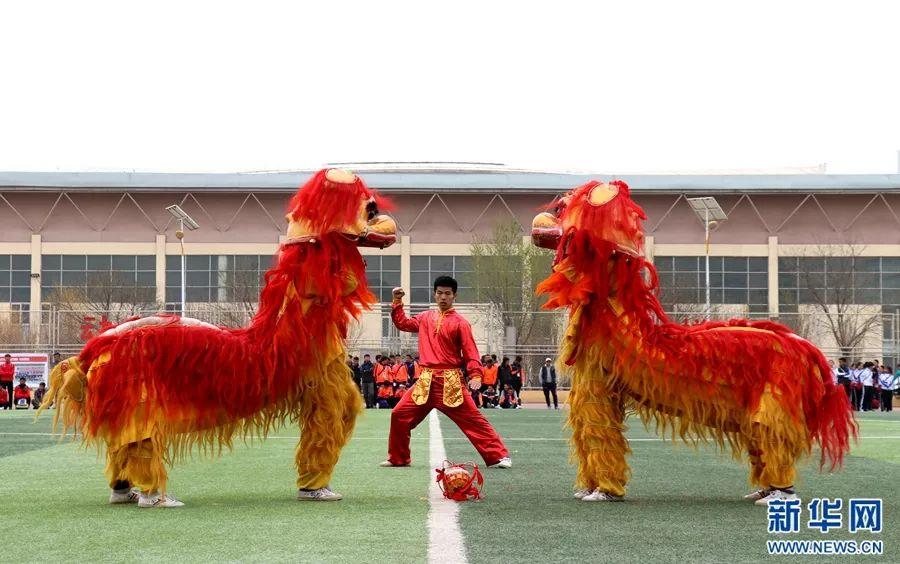 图为开幕式上的舞狮表演。(新华网发 张玉杰摄)↑