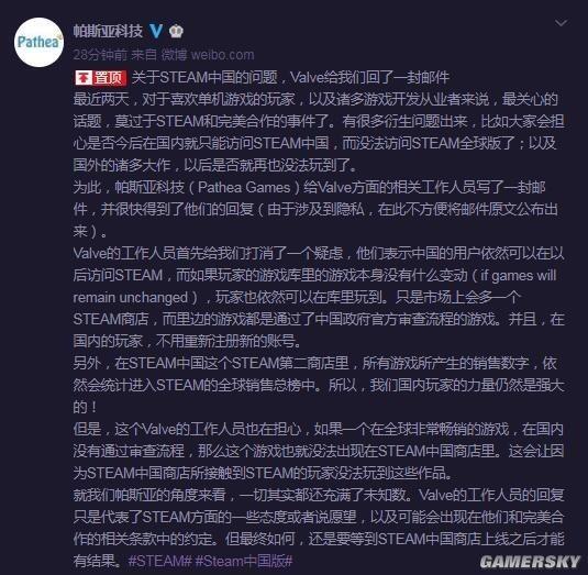 V社回复:Steam中国上线后仍可访问全球版